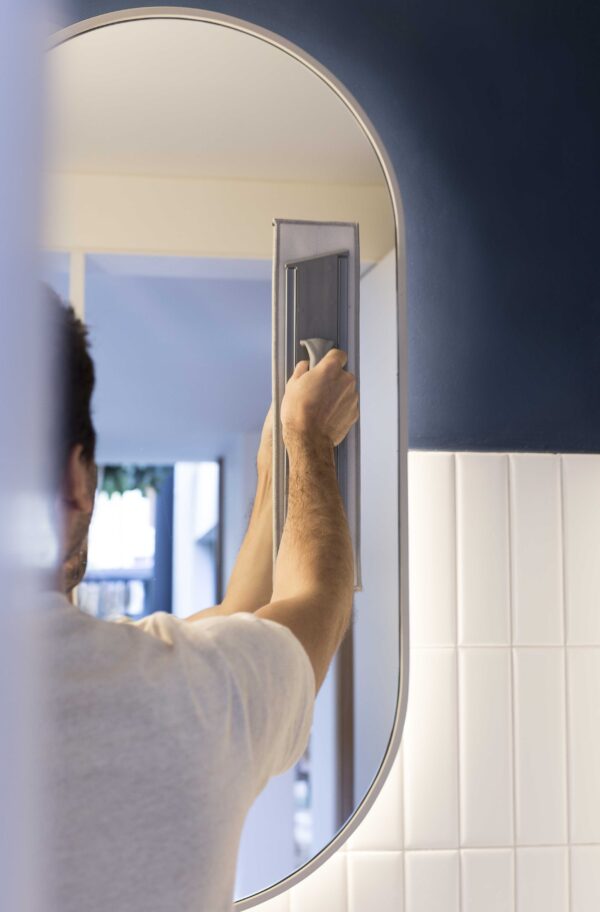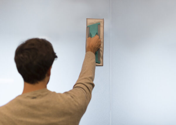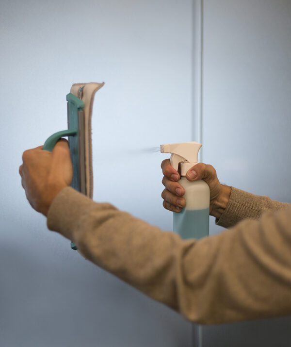 Em superfícies horizontais e verticais, graças às propriedades excepcionais de microfibra, em um terço do
