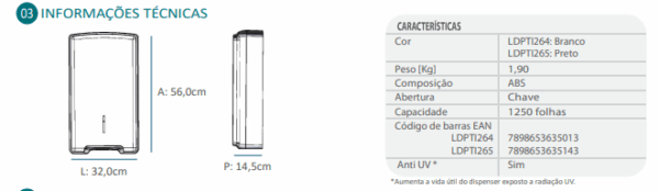 O Lunes Design para Papel Toalha Interfolhada possui alta capacidade e foi projetado para armazenar e facilitar o acesso ao papel, garantindo praticidade, higiene, economia e funcionalidade em ambientes de altíssimo fluxo. Sua função é promover um consumo mais eöciente, evitando o desperdício e proteger o papel de contaminações, de forma que não fique exposto ao toque constante das mãos ou outras sujidades, preservando a saúde íntima do usuário. Com linhas modernas que integram harmoniosamente o ambiente, tornando-o mais elegante. Além de funcional, o dispenser desempenha o importante papel no impacto visual, agregando estética e gerando uma melhor experiência do usuário.