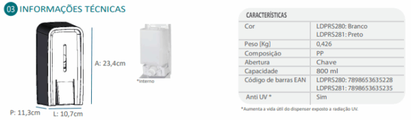 O Lunes Design para Sabonete/Antisséptico Spray com reservatório foi projetado para armazenar e facilitar o acesso ao produto,