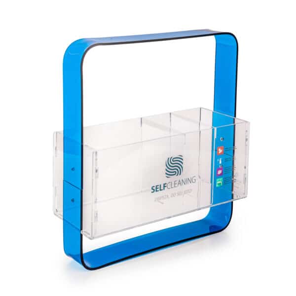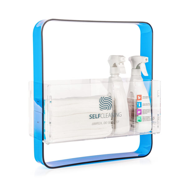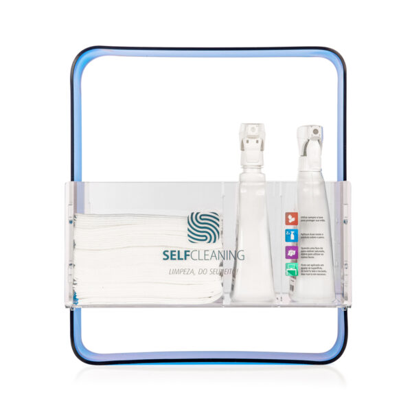 O SelfCleaning é um suporte compacto (40X46cm) elegante e resistente em duas versões de materiais de alta qualidade: madeira ou acrílico (veja mais opções abaixo). Pensado para se adaptar a qualquer tipo de ambiente, além de fácil de armazenar e transportar na hora da higienização.