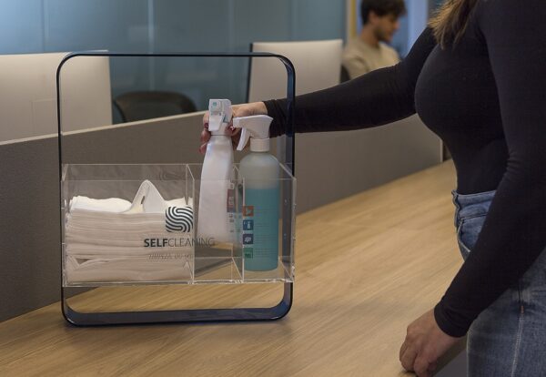 O SelfCleaning reúne tudo o que você precisa para limpar sua estação de trabalho sempre que quiser, sem necessidade de esperar pela limpeza regular. Dessa forma, é possível manter sua mesa e objetos desinfectados, reduzindo os riscos de contaminações e doenças.