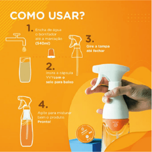 Modo de usar: Dilua o conteúdo da cápsula em 500ml de água no borrifador YVY e aplique sobre as superfícies. Considere deixar o produto agir por alguns minutos no caso de sujidade profunda. Remova o excesso (se houver) com um pano ou enxágue. Pronto ! Depois que o produto acabar compre apenas as cápsulas para reposição (*).