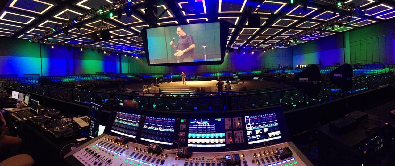 Sistemas digitais de última geração, mixers, microfones sem fio e monitores de referência.